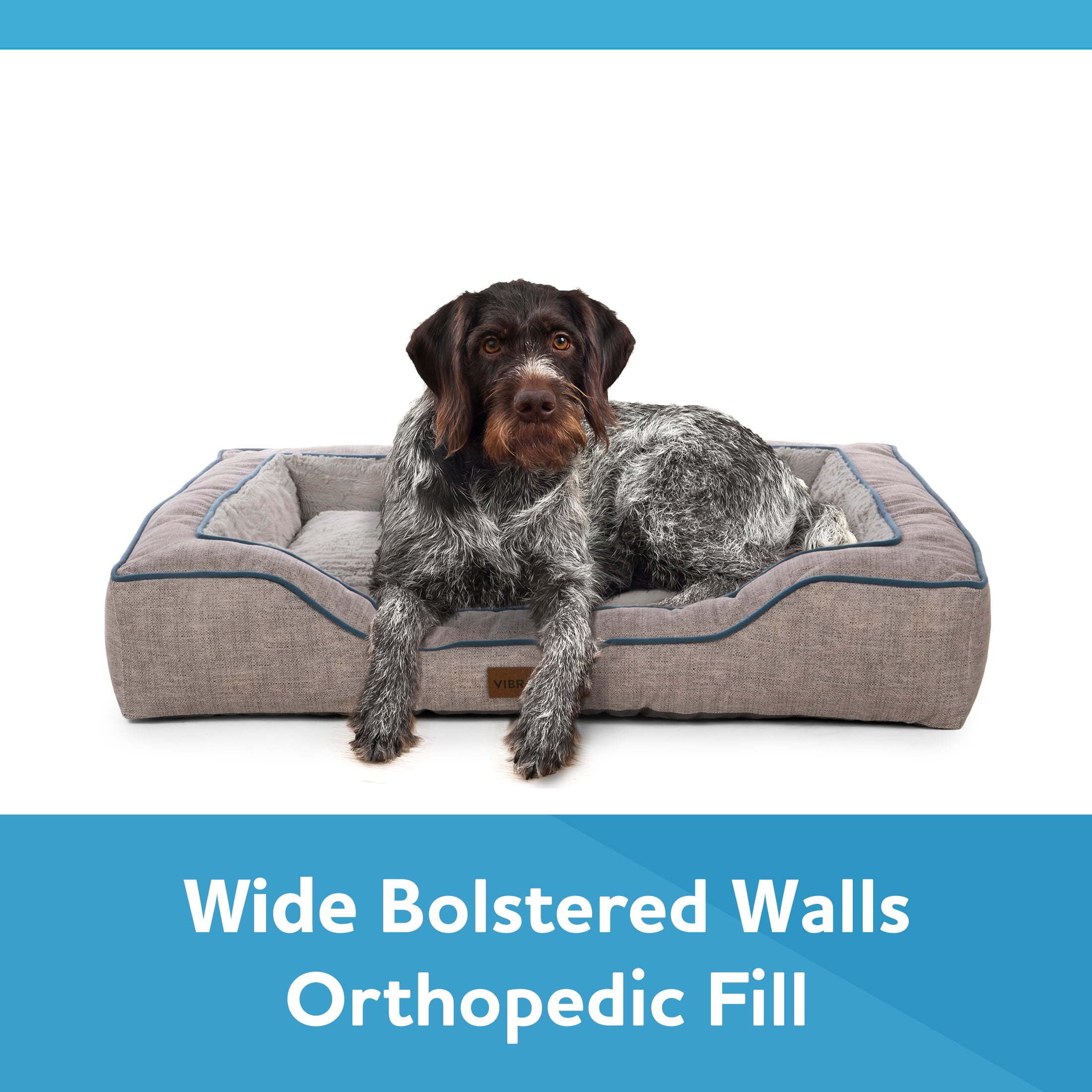 • Full-Body Support: Orthopedic mattress fill and wide bolstered walls cradle your dog for total comfort.