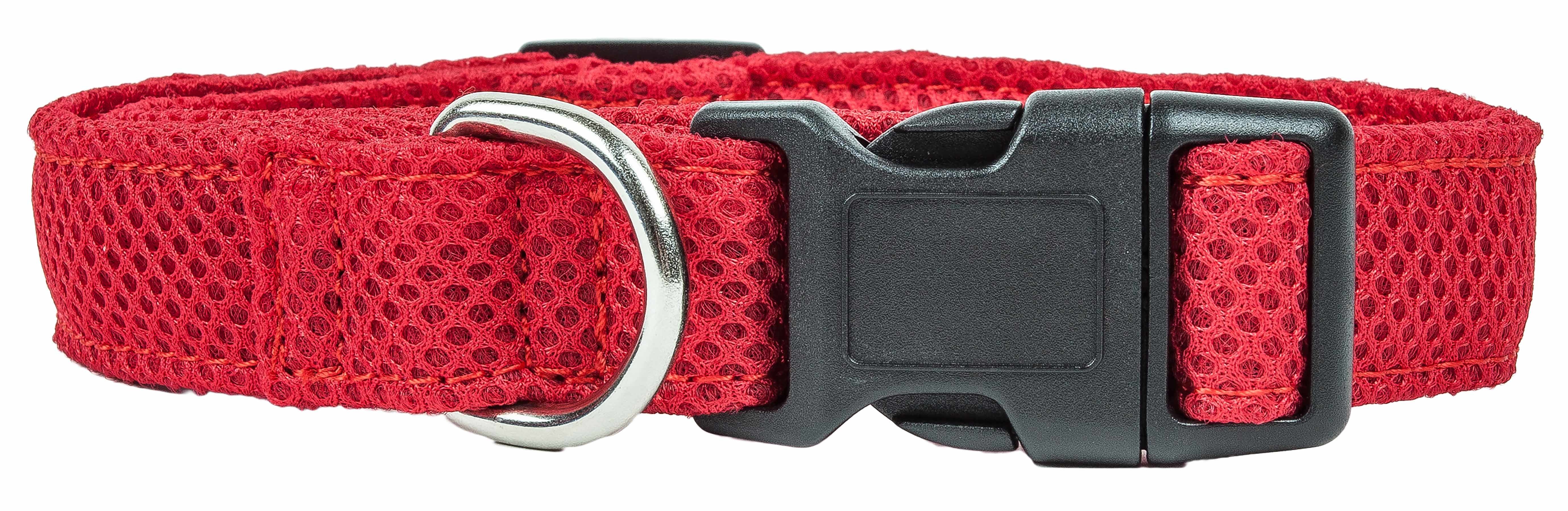 The Pet Life 'Aero Mesh' 360 Degree Dual-Sided Adjustable Mesh Dog Collar offers complete comfort and ventilation. This collar features Dual-sided premium Micro-Mesh plush fabrics that are fused together to create exceptional Breathability. Superior in comfort as compared to conventional Nylon or tougher-grade fabrics that lay around the neck, the Aero-Mesh collar gently cuddles and places less stress around the neck area. Features an Ultra-Sturdy Buckle Clip with a protective mesh layer preventing hairs from getting caught or pulling and a reinforced Stainless steel leash connecting ring meant to withstand high tug pressure. Collar is 100% Water-resistant and Machine Washable. Available in Multiple Sizes and Colors, Matching Leash or Lead Sold Separately.